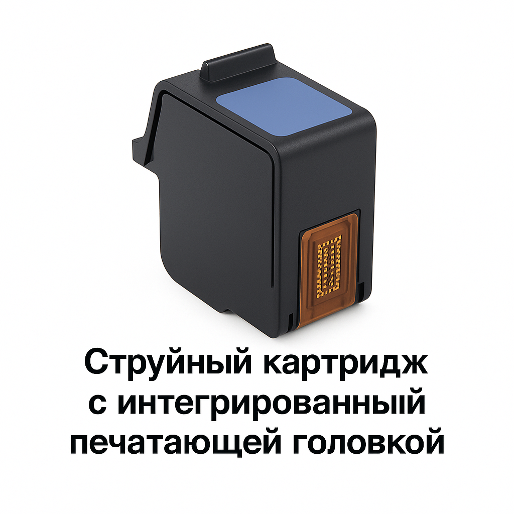 — С интегрированной печатающей головкой: картридж состоит из чернил и головки; удобно для редкой печати.